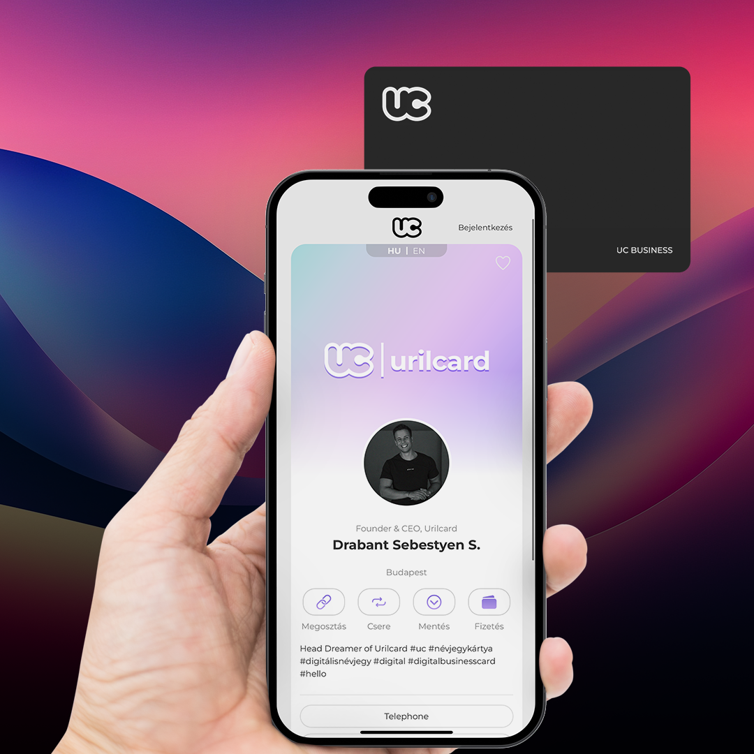 Az Urilcard egy modern, digitális névjegykártya és kapcsolatépítő eszköz, amellyel egyetlen érintéssel vagy QR kóddal átadhatod ügyfeleidnek az elérhetőségeidet és vissza is kaphatod az övéiket. Nem kell hozzá applikáció, csak az Urilcard (kártya, gyűrű vagy tábla) és a másik fél okostelefonja.